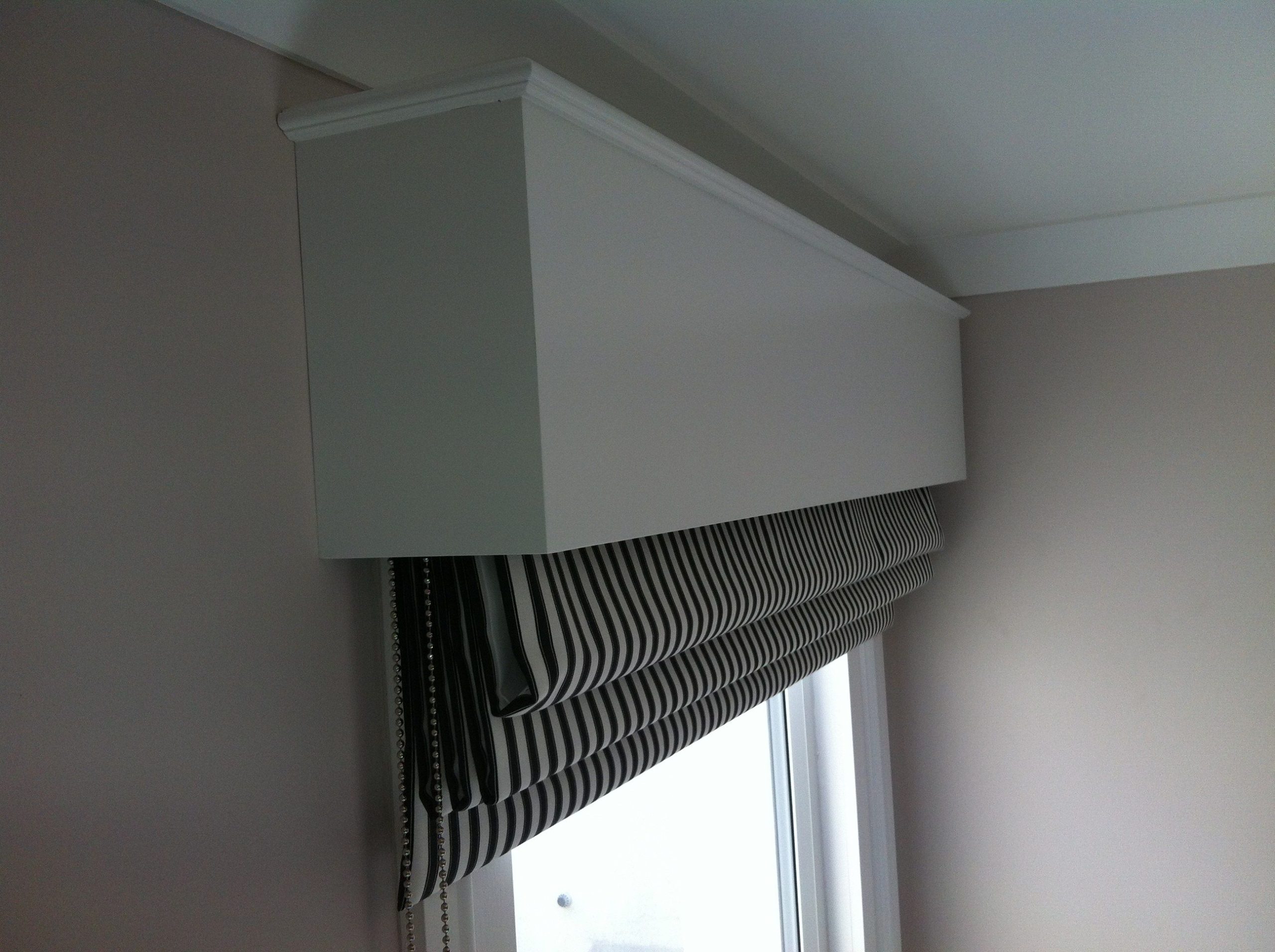Roman blinds are made up with battens behind the fabric which divide the fabric into panels and layer their way up when raised. Available in most custom fabrics they are an elegant way to dress up windows. Clients are able to choose from a standard range of fabrics or can specify or supply their own fabric for these elegant and formal window coverings.